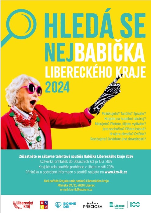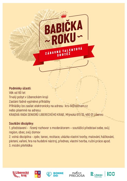 dovolte mi, abych Vás touto cestou informovala o chystaném 6. ročníku zábavné soutěže pro seniory a seniorky s názvem Babička Libereckého kraje, kterou pořádáme ve spolupráci s Krajskou radou seniorů Libereckého kraje.