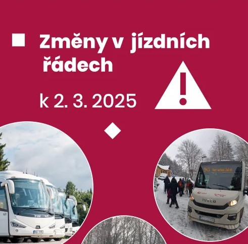 informujeme vás o připravovaných změnách ve veřejné dopravě v Libereckém kraji s platností od neděle 2. března 2025