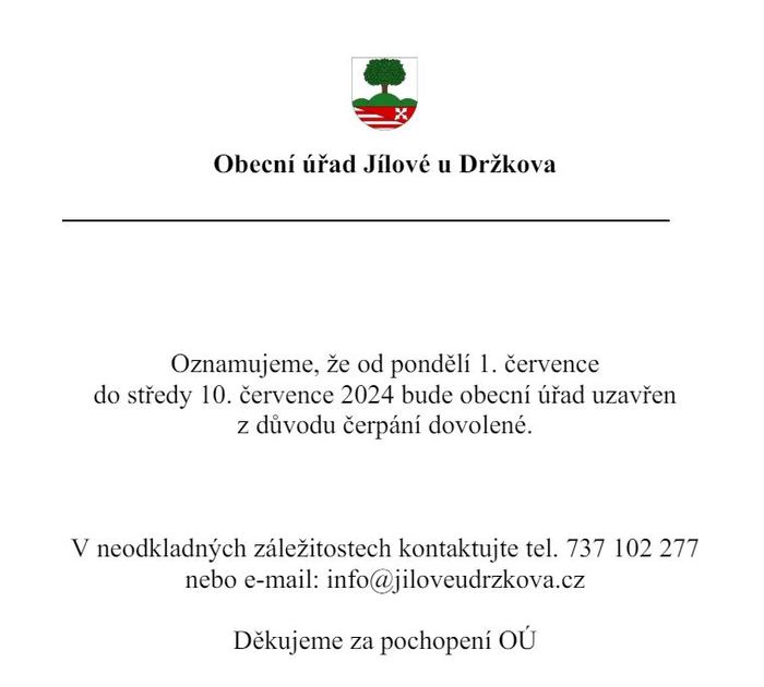 Obecni úřad Uzavřen od 1.7. - 10.7. 2024
