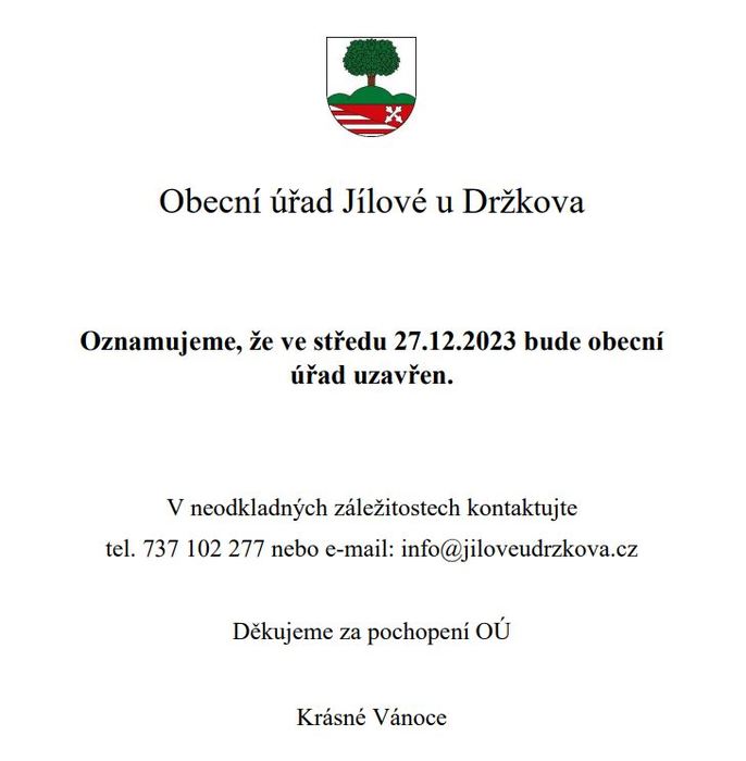 Obecní úřad ve středu 27. prosince 2023 uzavřen