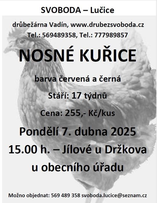 Prodej kuřic v Jílovém u Držkova 7.4.2025
