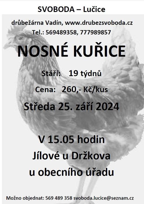Prodej nosných kuřic v Jílovém dne 25. září 2024