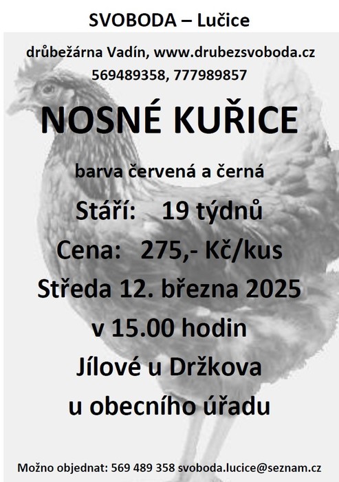 Prodej nosných kuřic v Jílovém u Držkova 12. března 2025