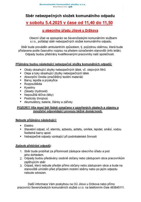Sběr nebezpečných složek komunálního odpadu 5.dubna 2025