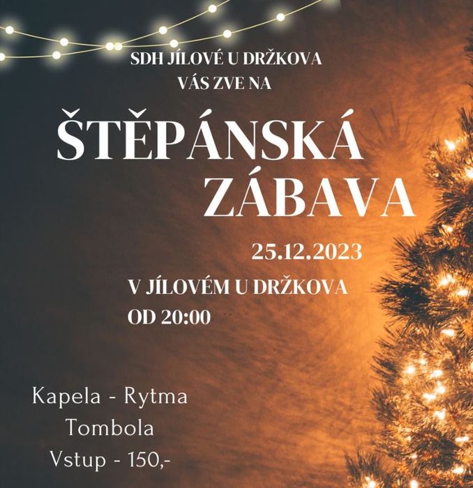 SDH Jílové u Držkova vás srdečně zve na každoroční Štěpánskou zábavu, která se koná v pondělí 25.12.2023 v Jílovské Sokolovně.