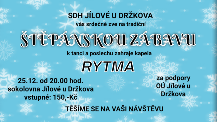 ŠTĚPÁNSKOU ZÁBAVU, která se koná 25.12.2024 od 20.00hod.