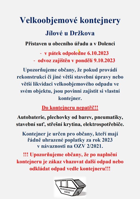 Velkoobjemové kontejnery v obci Jílové u Držkova