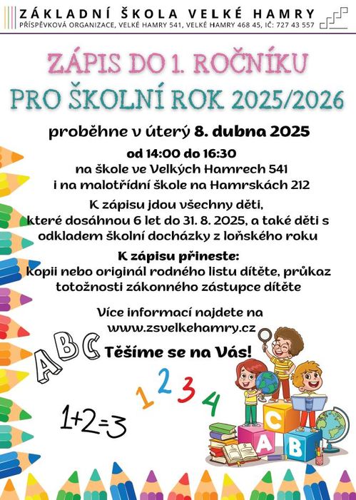 Zápis do 1. třídy ZŠ Velké Hamry