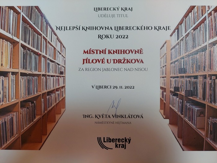 Úvod > O obci > Fotogalerie > Nejlepší knihovna Libereckého kraje roku 2022