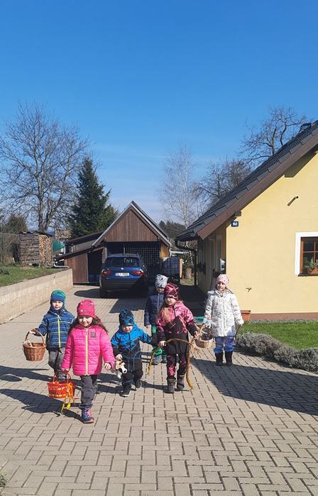 Hody, hody doprovody, dejte vejce malovaný... se na Zelený čtvrtek ozývalo u každých dveří. Za zvuku řehtaček s pomlázkami chodily děti po koledě. Za říkanky dostaly něco dobrého do košíku. Jsme moc rádi, že se tato tradice dochovala a stále je tak oblíbená. Už naši dědové a pradědové vyprávěli, jak jako malý chodili s děvčaty po koledě s řehtačkami. Děkujeme i novým spoluobčanům, že se zapojili a tradici podporují.