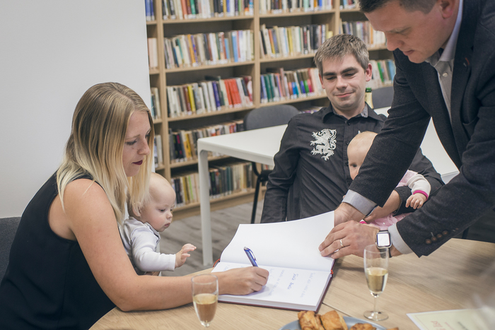 Pan starosta Bc. Otakar Foltýn všechny přítomné přivítal a popřál dětem i jejich rodičům spousty zdraví, lásky a štěstí. Rodiče se podepsali do pamětní knihy obce, převzali věcný dar a pamětní list.